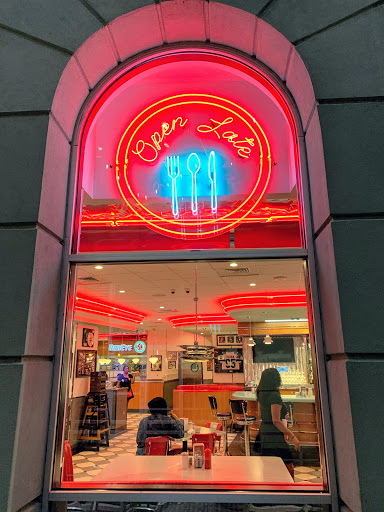 Restaurants near the convention center should be prepared for events and people from out of town! Apparently this one wasnt since they quit serving milkshakes after we got seated. Service was friendly and surprisingly quick. We had to use plastic silverware since they ran out of the standard metal. Food was standard, nothing special. Unfortunately, there was some patrons that had come in and was causing a ruckus, so we decided to leave as soon as we could.