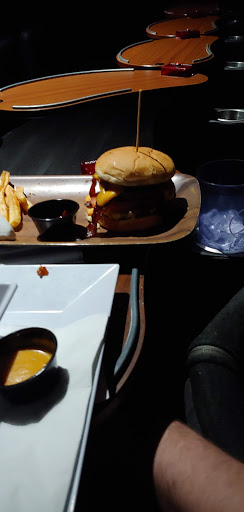 Trust me, all the one star reviews on here are true. You would be better to eat at 5 guys next door to this place then to eat in the actual theatre. I timed our visit so here it goes....1900: We arrive and sit down. We are one of the first groups to arrive in the theatre and sit down. 1905: waitress takes our drink AND food order; along with appetizers. We were with another couple who placed their order at the same time. 1915: The other couples food comes. We still do not have our drinks. 1918: My husbands beer comes. We still do not have our drinks...any of us. 1923: I press the "push for service button" on our seats. 1931: No one has come over and other people around us are getting drinks/food who arrived after us. 1932: I stop the young men who were passing out drinks near us and ask them if we can get our drinks because we have been waiting close to 30 minutes. They say the believe they have them on a tray that just need to be passed out. They finally bring over the drinks couple we were with ordered; they were done with their food at this point. 1939: The young men have left, seemingly out of drinks and we have not yet received ours. 1940: Another random server comes over, finally answering our "push for service button" that we pressed more than 15 minutes ago, and asks us what we need. I say, in what Im sure is a not nice voice, we have been waiting for our drinks for more than 30 minutes now. The girl says "well it is really busy" and I say well 30 minutes is a little ridiculous. At the same time one of the previously mentioned young men brings us our drinks. The movie begins, she points and makes a snide face and I just sit back while she walks away. No apologies. 1942: Our food comes, the food we ordered with our friends who go their food at 1915, and it is cold. That is just about it for me. Poor service, rude wait staff and cold food? Come on. I walked out during the movie, because obviously waiting for them to answer the "push for service button" would take too long, and find a manager who is more than apologetic and gets us new food along with a discount on our bill. This is the only shinning moment for this establishment the entire night, who seems to be the only one in the know, unfortunately he has no control over his staff it appears. We get our bill at the end and has something on it they we didnt order and then had to wait again for them to fix it. Sense we were still sitting there we go to hearing the ravings of the staff about how dirty it was in the theatre and hear them using all their colorful expletives to describe their distain for having to clean it up. If they dont want to clean the theatre think about how they take care of the parts we dont see. This was just the icing on the cake that was our horrible experience. I am not oblivious to the service industrys plight, being in it myself, nor was I blind to see that they were very busy, a situation they are apparently not trained for. They obviously tip pool because the girl that took our order at the beginning I never saw again. This creates no incentive to do a good job or go the extra mile. Maybe they should consider giving the "servers" their own sections and teaching them what working a little for their money entails. There is so much room for improvement in this place it isnt funny. It will be a cold day in you know what before I set foot in this establishment again. Do me a favor and eat at home before your trip to the movie theatre. Your money is more well spent on a over priced AMC movie theatre popcorn/soda combo then this place.