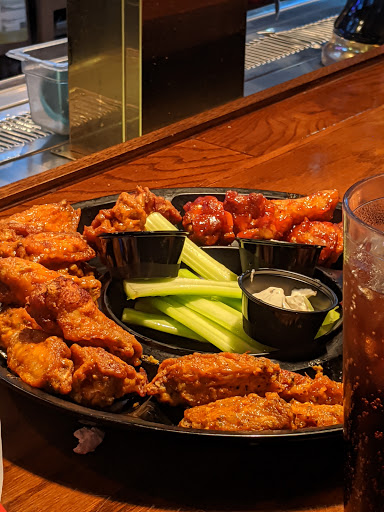 So first let me say that I love Wild Wing Cafe. We came here around 9:30 pm and the restaurant was not full AT ALL. The hostess immediately informed that there was a 20 minute wait. We started to leave but then asked if we could order at the bar. We stood at the bar and were literally never acknowledged. The folks at the bar were already complaining that they had never received refills and that the service was horrible. We literally had to flag down 1 of 2 waitresses at the bar who took our order but never made eye contact. We ordered the Wing Sampler with three flavors and Wild Fries. When she was inputting our order into the system she yelled across the bar to confirm our order. Very impersonal. I dont know if they were short staffed or what but that is no excuse for poor customer service. We waited almost an hour for 1 order of winds ONLY because we 1. Already paid for them and 2. Were genuinely curious at how long it would take. They appeared to be more focused on pouring drinks than anything else. I saw the most diligence from the busboys. At least the wings and fries were hot (we had been sitting there so long we decided to eat there.) but we only had 1 ranch and 1 blue cheese, no napkins or silverware, and no sour cream thats supposed to come with the fries. People were leaving and going to other much busier restaurants and eating before us. Apparently this is a regular issue at this location. Save yourself some time, hunger pangs, and frustration and go somewhere else.