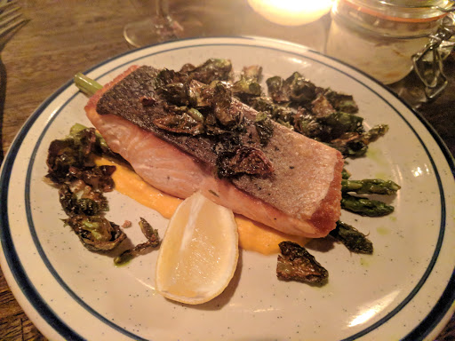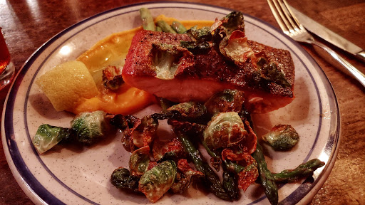 This place was decent, but it certainly didnt blow anyone at the table away. A little British pub turns into a thumping DJ-fest on weekend evenings, to the point you cannot have a conversation over dinner even at the back of the restaurant. Im not sure who thought it was a good idea, considering there is zero space to dance or party in, but someone must have. Id go here for the fish and chips again, but Id definitely go for lunch instead of dinner.