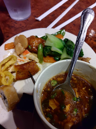 This place is LOUSY. We were drawn in by the neon lights surrounding the building that can be seen from the highway. We went on a Friday at 6:30pm (should have been prime time for hot fresh dishes). The buffet even looked promising at first glance and we were excited. Weve eaten at TONS Asian restaurants all over the county over the years (Chinese, Japanese, Korean, Vietnamese, Thai, Indian, etc.). This place is terrible. There was virtually NOTHING good on the buffet. The soup tasted like really bad tap water; sweet and sour chicken was just plain bad (the chicken tasted like it was possibly expired and the breading had no flavor at all); all other fried chicken dishes were soggy and ordinary; veggie dishes were way overcooked; the rest of the selections followed this trend. The only semi-palatable thing we had was the sushi; it wasnt bad for a Chinese buffet. Sushi was cold, fresh, and overall decent for this type of restaurant. But that was literally the only redeeming quality of this place. We will not return. People that rate this place as good obviously have horrible taste and have never experienced a truly good Chinese buffet. Ignorance is bliss I suppose.
