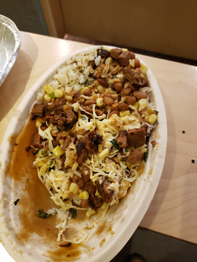 Inconsistent and too expensive, errors made on orders. Chipotle is normally a fine option for a high calorie "mexican" meal. This location has not been as consistent and friendly as I would hope. I try to order online but theyre settings give way too much of a time cushion by default. Order at 12:25pm and cant pick up until 1:15pm? I showed up at 12:45 and no one was in line so they just made it for me. Why not have pick up time asap? In the past they have neglected to fully read the order and forget the Tortilla on the side that I request. Thats relatively infrequent though. Worst part of my last experience was that the to go bag with a burrito bowl in it somehow did not hold the moisture/grease and it diffused through the bottom of the bowl, wet the bag, and the bottom of the bag broke while I was carrying it. The bowl exploded and I lost most of my food. Bummer. I think with plastic bags, better bowls, or simply securing the foil top better this could have been avoided. This location also seems to be missing some sort of meat often. "Supply issues" because they source from only certain types of farms. Thats okay and I understand if youre into that. But I dont care much and its annoying that more consistent sources have not been set up. Displeased.