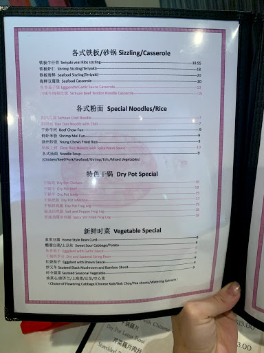 Good variety of typical American-style Chinese food, with some Sichuan options thrown in as well. The twice-cooked pork is spicy and delicious!