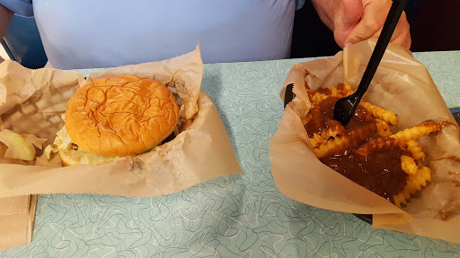 Got a burger "Carolina Style" with mustard, slaw, and chili. At first thought there was a mistake since there was nothing on top, instead they put the toppings under the pattie . . . and so little it was hard to even tell they were there. Bun cold, burger tasteless and only lukewarm as if it had been precooked. The patty was so dry it was crumbling apart as I ate, looked like it had been smashed down repeatedly on the flattop. Fries are the generic frozen crinkle cut, disappointing for a diner. Also server was more interested in her smartphone than me.
