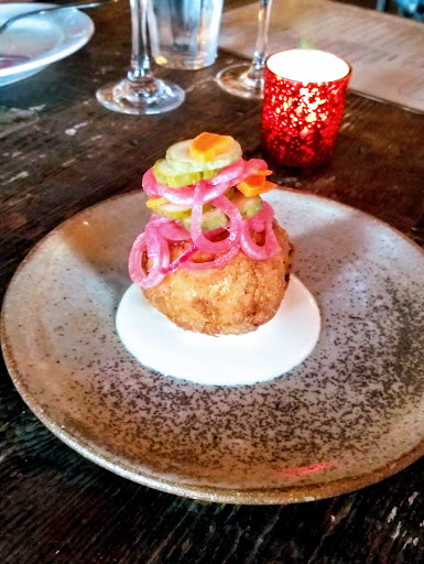 First time going here for an anniversary and we were not disappointed. The food was excellent, interesting, and ordering 5 dishes between the two of us was plenty (also not nearly as expensive as Id thought). The rabbit liver pate, smoked trout caviar dish, and pasta with saffron, rabbit and chorizo were my favorite dishes of what we ordered. Our server also recommended a lovely bottle of red that worked with with everything we picked. The only reason for the 4 stars instead of 5 is the service was a bit iffy at times. They brought all of our plates out almost at once and then ignored us for 30 minutes between clearing the plates and taking our dessert order. Its a busy place so Im thinking they just move fast, but its odd to bring out every single plate at once. That being said, with such wonderful and interesting food, Ill be back often.