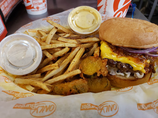 Great burger place! Only Burger started as a food truck and its overnight success initiated the succession of its two locations. Although this is the most recent location, it does not lack in quality at all. Having fritos on your burger is actually amazing! Would recommend! The customer service is superb. Bathrooms are kept sparkle clean! Parking can be a pain sometimes, but there are spots at the East Deck behind it. Be aware for baseball games and events at the DPAC (performing arts center), as that will cause a lot of traffic in this area and at Only Burger. Would highly recommend!