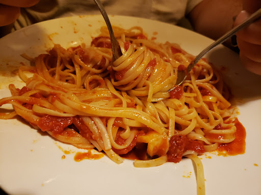 Food was pretty good (by far, not close to the best Italian), could have used less oil though. However, the service was horrible. The restaurant was not busy at all. Our server came to us right away and immediately we both pulled back because she reeked of cigarette smoke. It was really bad. She gave us menus, took our drink order and disappeared before I could ask a question about the menu. When she returned, she did not know if the restaurant had Blue Cheese to crumble on the salad or not and she did not know the answers to a few other questions about the menu. She did bring salad right away, and the main course arrived as we were finishing the salad. The server brought us a half glass of Diet Coke to split between us (for the refill) and disappeared. She was gone so long that after we finished our meal, we waited another 15 minutes before I asked another server if she could find ours. That person just looked at me - no answer - and kept walking. At this time, there were only two other tables occupied in the restaurant. After almost 10 more minutes, we walked up to the front desk to pay for our meal - we had to tell the cashier what we ate because we never saw the server again. We told the person at the desk and she had no explaination as to why this happened (server was probably out back smoking another pack of cigs). Food -= 5.5 • Price/Value = 5 • Atmosphere = 6.5 • Service = 2 (and that is being generous)