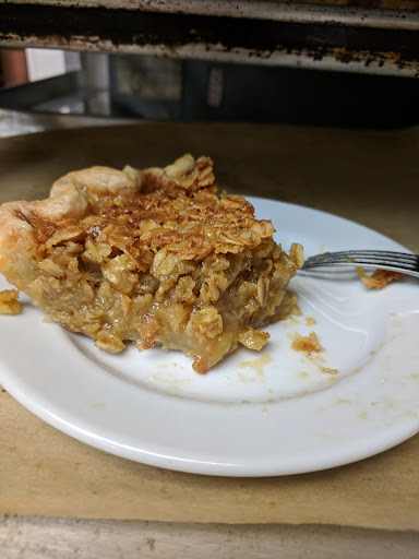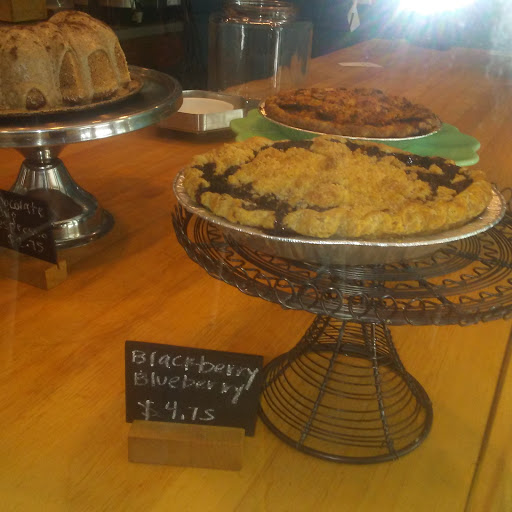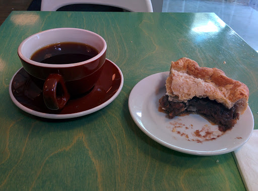 This place is alright. The guy behind the counter was not friendly and made it seem like we were bothering him by asking if they had non-dairy milks or even skim, which they did not. Couldnt tell you whether they dont offer it or were temporarily out. All we know is that they have 2%. The pies were good enough, though the crust on my chocolate chess pie was slightly burnt. The shaker lemon pie had a great crust and was very lemony. All told, though, they really didnt give us a reason to return and we likely will not.