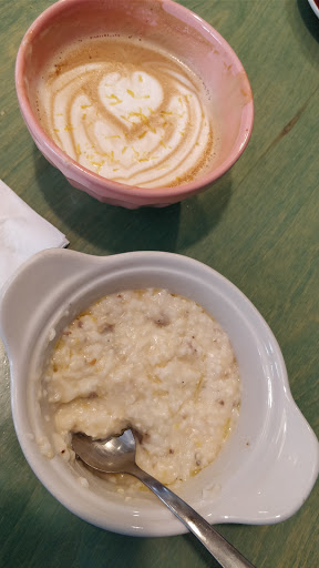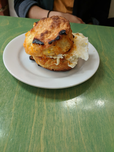 Made from scratch buttermilk biscuits were crunchy on the outside and fluffy on the inside and the best part of he meal. The bacon jam biscuit was sweet and salty, very well done, but I would have liked a little more jam to make it a little sweeter. Scratch serves bottle coke with real sugar, the best coke there is, and my wife had a standard cafe americano which in her words "wasnt bad." The atmosphere is quiet and quaint. Clientele was mostly college age folks which I attribute to the restaurants proximity to the University. Seating for about 25 folks inside and additional cafe style seating out front. As you walk into Scratch, the seasonal menu is written on the chalkboard wall to your right and an exposed brick wall on your left lend to the trendy rustic-industrial atmosphere.The honey lavender chess pie had good flavor but unfortunately it had a soggy bottom. All in all we think that Scratch deserves a second chance to impress us and we will visit again.