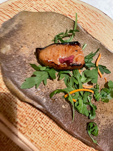 The word I would use to describe my entire dining experience here would be: delightful. I was filled with delight from the minute we walked in. We were met at the door by the very charming hostess, given slippers for a more traditional Japanese homestyle feel, and lead to one of only a few tables. It was quiet, and peaceful, and gentle koto music was playing. If that doesnt put a delighted little smile on your face, your heart is made of stone. We went with the sake pairing menu to accompany our meal, and the hostess was extremely knowledgeable about every bottle; not to mention that each drink was perfectly paired with each dish. The first dish was lightly pickled persimmon served with a light, floral sake that came to life when it mixed with the mirin on my tongue. It was just a gentle sail from one delight to the next. There was a delicious teapot full of soup, some of best sashimi and nigiri Ive ever had, a grilled eggplant that was the first and only eggplant that Ive actually enjoyed eating, a scallop fried in a crust of panko and rice crackers that Ill probably pine for the rest of my natural life, an edible chrysanthemum that tasted like ginger, and a multitude of other delicacies from the sea and the chefs garden built together into a perfect symphony of flavor. Most reviews have mentioned the handmade pottery that the chef creates to serve his dishes, and that was the aspect that pushed this meal into the transformative. I know Im getting flowery here, but some meals deserve that kind of prose, and this was one. If youre looking for a rare opportunity to experience an elaborate and well-crafted kaiseki experience, then stop reading and make your reservation. I can promise you it will be, from start to finish, a delight.