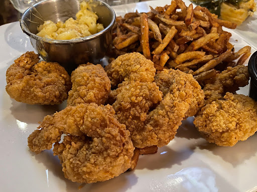 For those who enjoy a good drink, the draw here is obvious: there are more than two dozen whiskeys (to say nothing of ryes and scotches and bourbons) from near and far and enough appealingly creative cocktails to inspire a mad quest to try them all. But even those who don’t imbibe can find a lot to like at 913. Don’t let “I’m not a whiskey drinker” keep you from giving this establishment its due. To begin, 913 is a very comfortable place to enjoy a drink or a bite to eat. Three different seating areas (bar, main, and patio) ensure that there is enough space to go around. The ambiance is classy without being stuffy: think somewhere between sports bar and martini bar with the friendliness of the former and the panache of the latter. Service is another plus here. Steven, one of two bartenders on duty during our visit, proved to be quite knowledgeable and helpful in guiding my fiancée toward a whiskey. Instead of trying to upsell, he took the time to listen and explain and ultimately made a very good impression. Wait time for food proved to be minimal as well. Though it wasn’t crowded during our visit, all indications are that 913 runs a very tight ship. Further, the food gives credence to the idea that “southern kitchen” is more than just an afterthought. The menu offers up both tried-and-true classics (wings, collards, okra, pulled pork, chicken and waffles) as well as some novel combinations (a gouda/mushroom/okra/garlic sandwich). My fiancée rolled the dice with The Farmhand (a pesto/tomato/mushroom/okra flatbread topped with two cheeses and various herbs) while I opted for a smoked mac and cheese (with pulled pork and tomato onion jam) sandwich on sourdough and tater tots. Neither of us regretted our decision. The sourdough held the sandwich together well, and the mac and cheese within was creamy without being overbearingly rich (the tomato jam added a hint of sweetness). The flatbread likewise offered a great fusion of flavors and textures. At $8 and $10 respectively, both dishes were reasonably priced and well worth the money spent. Honestly, there is very little not to like here. The hours are somewhat limited (5 p.m. to 11 or midnight, four days a week), and if you don’t luck into a space across the street, finding parking can be a guessing game. That aside, 913 offers a good combination of food, service, ambiance, and affordability for whiskeyphiles and teetotalers alike.