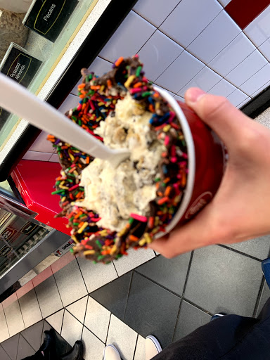 Delicious ice cream. The employees are usually young high school kids doing their best to handle a tough job. Not much else to say about it. I always have had a good experience and Ive been going to this location for years.