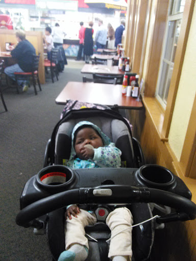 Bathrooms not cleaned, toilets especially. I told them but they only carried a mop to the bathroom to clean it within about 5 minutes time total counting the time it took to go get the mop I guess I should have took a picture I like the food but if its any reflection of how the bathroom looks Im actually scared to think of that