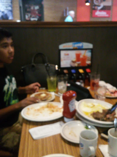 We did not have a good experience at this location. I can be patient when your restaurant is busy but there were 2 ladies working up front and about 3 or 4 families waiting to get their name on the wait list to be seated. We were not warmly greeted or told "just one moment". When we finally got a table after a 15 minute wait our chairs had food and crumbs in them, the floor was covered in what looked like those little baby cereal snacks, our menus were sticky, our salt and pepper shaker had syrup all over them, the kitchen was backed up so we waited forever for food, my daughter and i had scrambled eggs that were just barely cooked. She ate some (shes 6) and went to their bathroom to throw up 2x afterwards. My husband was using the syrup and there was a long piece of hair in it....we saw our server maybe 2x. She never checked on us. She didnt come to get a drink order then food. Instead once we were seated she showed up about 8 minutes later asking if we were ready to b order...showed up 20 minutes later with our check....needless to say that was my last visit to this location. Teach your staff proper customer service skills please.