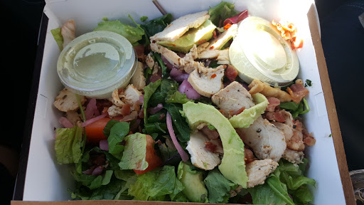 This location never gets my salad right. I always ask for mozzarella in my salad, & they always for get it. I always ask for 2 different kinds of dressings, & I never get it. So here I am again with dry a salad with no cheese.