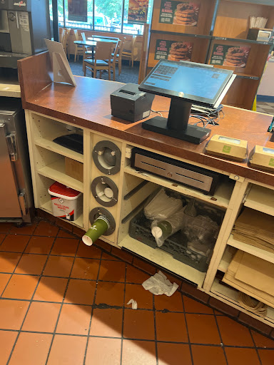 I love panera and eat there a lot, but will never return to this location. The service was terrible, the cleanliness was horrific. The bathrooms were a mess and havent seem to be cleaned in days. While prdering my food, the girl was rude and very short and after taking my order, proceeded to talk about me to another waiter....in front of me!