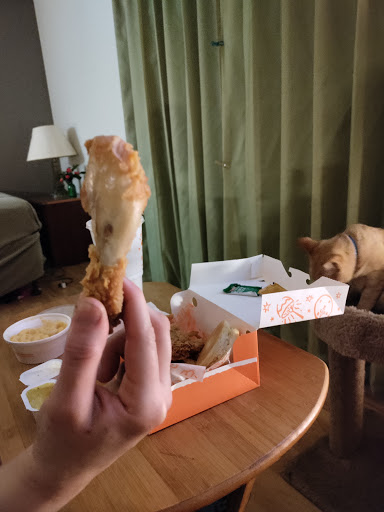 I just had the worst experience ever in this place first off the cashier who works their with purple/blue lipstick just argued me down in front of all the other customers just because I asked for the 5 dollar big box and i requested for them to please not give me a thigh with my two piece Ill take a drumstick but no thigh with the 2piece mixed dinner well she goes off and tells me Ill get whatever they choose to put in the box and hurry up and order I even asked for the manager and she said I dont care Im telling you thatshould what I said take it or leave it no customer service skills whatsoever and demanded the manager to tell me the same she made the manager tell me I have never witnessed a employee tell the manager what to say even as I decided to leave and go elsewhere the cashier still screaming go wherever you want we dont need you its gonna always be people to buy our chicken just terrible attitude and she shouldnt be allowed to serve anyone better yet shouldnt even be in a customer service field