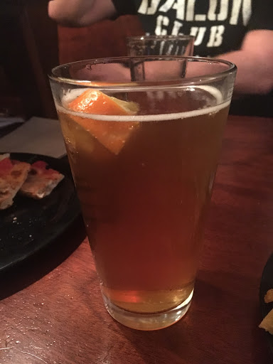 Went here with my sister and was really sketched out at first because of the night time enviroment outside, however when we entered we were very delighted by the calm atmosphere. The people that entered werent very loud or obnoxious and the amazing staff there were kind. The places interior looks awesome as well. Good vibes! The food and drink selections are well done and pricing isnt bad. Came to near closing time and they still served is pizza, but by slices. Soo delicious. The pizza was AMAZING and the appitizers are to die for. I plan on returning. Gots me a new pizza place! The only thing that put me off a bit was the water stain above the kitchen. Looks pretty, bad but looks old. Just hope that gets patched because its a bit unappealing. Regardless, this place is a must try.