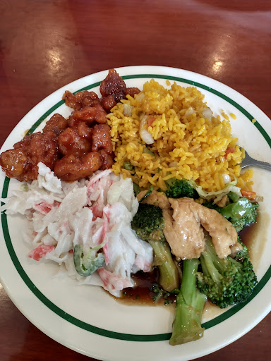 This is my favorite Chinese Buffet Ive been to so far, the restaurant admittedly doesnt look like much on the outside. Its one of the stores in the strip mall to the left of Wal-Mart with a red sign, but you wouldnt believe it once you go inside. Its huge and warmly-lit with a chandelier above the buffet and huge artwork on the walls. The staff look professional and provide quick and friendly service. They have a pretty large private seating area that probably sits up to 20-30 people (although I never see anyone in there out of the 5-7 times Ive been in there) for anybody whos looking for a place to have a private party, meeting, etc. .................................................................................................................................................................................................. The buffet is HUGE and they keep everything out and ready in big portions most of the time. My favorite dishes include the General Tsos Chicken, The "Spicy Chicken", Fried Rice (vegetables in it), Sugar-Coated Buns, The Peppered Chicken, the Chicken/broccoli Dish, and Skewers. Believe it or not, you could bring someone that absolutely hates chinese food to this place and they would be re-adjusting their belt by the time they leave because there are so many dishes and desserts that are american like pizza, garlic chicken, garlic bread, chicken nuggets, pudding, and even ice cream which I didnt realize they had for a long time because its kind of hidden behind the buffet. The one thing I would not recommend is the jello, when I tried it, the outside was hard and it had a weird texture like it had dried out. .................................................................................................................................................................................................. The prices for a buffet are very affordable, $5.50 for the lunch buffet on weekdays, $6.50 for the lunch buffet on Saturday, and $7.50 for a lunch buffet on Sundays, the reason being that there are more seafood dishes served (which I dont care for). I dont know what the dinner rates are exactly, although I know theyre much higher, but you can call in and ask.