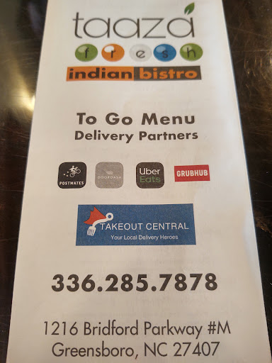 When this established Burlington eatery expanded into Greensboro, it entered a market that already featured a few decent options for Indian food. But whereas some were inconsistent or limited in their offerings or muted their flavors, Taaza has so far managed to avoid all of those pitfalls. As a result, it has emerged as unquestionably the best Indian lunch buffet in Greensboro. Small but stylish, Taaza ditches a lot of the classic iconography in favor of a more modern look. The bar area is well-lit, and the sleek interior is inviting. The buffet offers a good balance of vegetarian (pakoras, daal, and curried vegetables) and non-vegetarian (tandoori chicken, chicken tikka masala, and curried mussels) dishes along with chutneys, sauces, salads, a goat soup, and two different kinds of rice. Kheer and mango custard are among the dessert options, and servers deliver complementary naan to each table. Though the buffet offerings rotate, it should still be easy enough to find something to your liking. The execution is, for the most part, spot-on. Whereas some Indian restaurants will tone down their buffet offerings for mass consumption, Taaza’s curries are aromatic, appropriately seasoned, and deliver the expected complex flavors. The tandoori chicken had a nice char note, as did the buttery naan. The sauces and chutneys allow you to cool down or heat up as suits your palate. At $10, Taaza’s buffet is competitively priced. The servers are also attentive: you won’t go long without water. While there are a few minor quibbles – the floor is overly slick in places, some of the buffet items can be better labeled – Taaza otherwise makes for an impressively tasty lunch destination.