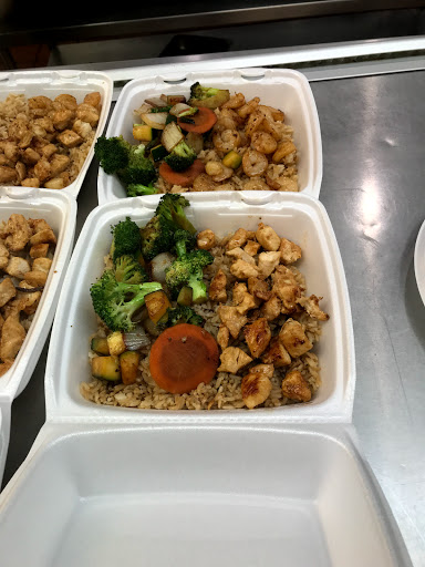 The food is good and fast. I ordered hibachi chicken and steak. I feel like there should be more zucchini but thats not an issue. The staff was okay. Not super friendly but not horrible or rude. Its a nice clean place to eat. Mostly natural light with accent lighting. Gives it a real chill vibe. Definitely worth stopping by if youre nearby getting title work done at the license agency next door.