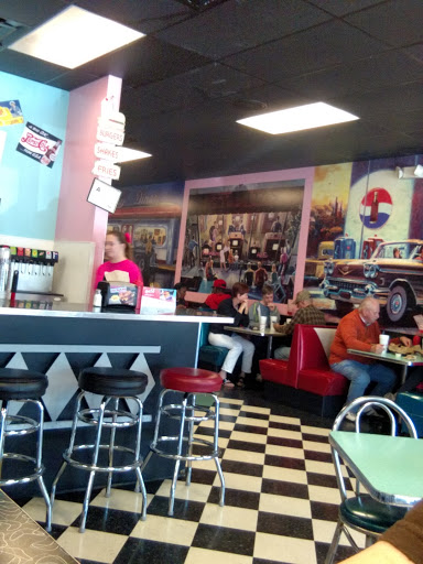 The food is great. Its reasonably priced. The kids always love it here! Thr kids meals come in little paper cars. The shakes are really good. The classic burger is always a safe bet. They also have options like pimento cheese burgers. Thats always a fun change. We have always had great service here. The last time we visited the service was literally the best service ever. As you approach the door, they run and open it for you, either welcoming you inside, or thanking you for coming as you leave. The food never takes long to get to you, however, definitely longer than fast food. They actually make it to order. You see the grill and you know when your orders up if youre paying attention. This place is just a well oiled machine with great service, food, desserts, and prices. We go here once every few months as a family.