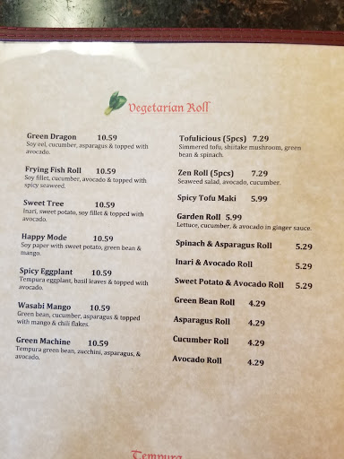 I enjoy the vegetable sushi. The avocado is especially delightful. Good service, nice people.