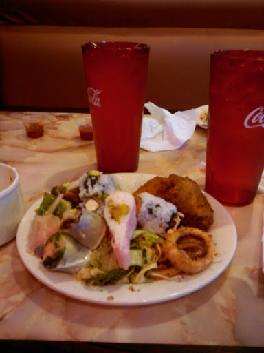 Went on a Sunday night. The place was packed and people were everywhere. Server was courteous and attentive. Lots of food choices, all delicious and would definitely recommend. There were little kids everywhere and some running that got me really annoyed. Theres a reason they post signs on the walls telling parents to watch their kids. If you cant keep your eyes on children, please dont take them iut to eat. This is why and how accidents happen as I almost walked into a kid running with his plate of food. Anyways, sushi was good and only thing I was sad about was not getting to try everything I wanted as I had already gotten full. Would definitely visit again.