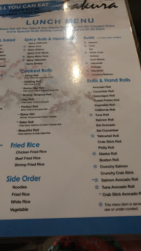 I have been going Sakura regularly until today... The food has taken a dip down hill... I asked the manager if they changed cooks?... She told me yes... I told her you need to get the old one back! My fried rice that was so good was burnt last 2 times... The grease doesnt get changed food tastes like old oil.... My shrimp is no flavor... Im sorry they changed cooks... I really loved it before... But now... No thanks....
