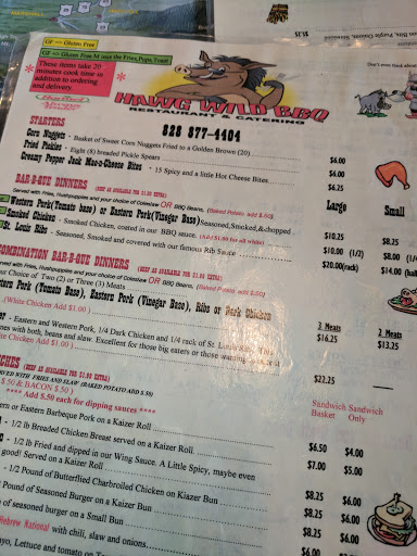 Hawg Wild Barbeque is a Great BBQ Restaurant!!! Very clean establishment. Great staff. Excellent food. Fair prices. Try the Hush Puppies, theyre one of the few places that still has traditional hush puppies (instead of pre-made mass produced pups like other restaurants have started serving)!!