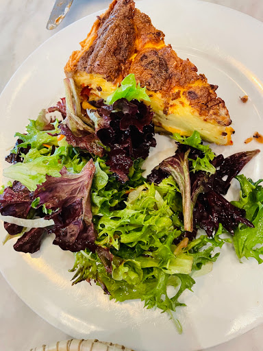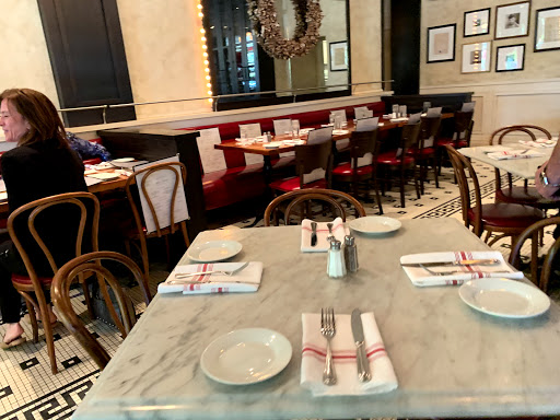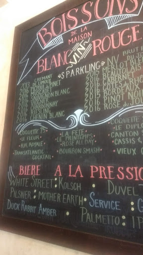 Staff was friendly, jovial and entertaining. Between friends and my girl we had a few quiches and a sandwich. The quiches were more greasy than Id like. We had some drinks as well. The bloody marys were excellent, I mean really really good. I like a good amount of horseradish in my mix and this was spot on. I love French wine and while I understand that this is a French restaurant in North Carolina in a shopping mall geared toward affluent white people that dont know the difference between a crêpe and flapjack, the glass pour selection was way too safe. Im sure the bottle list had more to offer and I know that Im being a little picky/judgemental, but in the ever-growing and boundary pushing city we live in, itd be nice to see something on that glass pour list that intrigues the growing population of the triangle. This area is evolving, and so should the service industry. The experience was enjoyable overall. Ill be back.