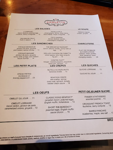Worst dinner experience! Recently experienced the worst dining experience of my life at Coquette Brasserie on the occasion of my fathers 70th birthday. The majority of the issues we experienced came from the kitchen and despite a pleasant wait staff they too fell short in the end. Heres a list of what went wrong: 1. One entrée ordered at the same time as the others arrived 20 minutes after the rest 2. French onion soup (one thing a bistro/brasserie should get right) was bland and included raw onions 3. Oysters had good sized shell fragments in them from poor shucking and cleaning 4. Terrine du jour, a pate, had bone in it 5. Steak was undercooked, for only half the steak lengthwise. Im not really sure how you even do that. 6. Waiter brought two incorrect drink orders 7. Despite being reminded twice, the wait staff forgot to put a candle in my fathers dessert 8. Gave us a gift card but didnt credit any items from our meal. All around terrible experience which is too bad since the décor and ambience was nice and the menu was enticing. We will not return. For the benefit of other customers I really hope they sort out their kitchen issues.