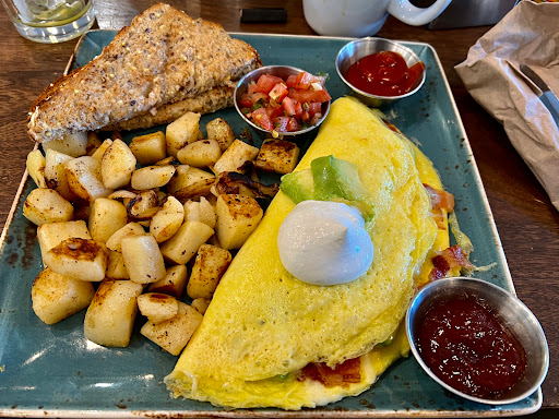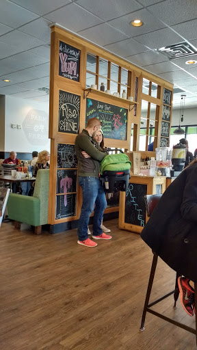 Tasty and guilt free! We decided to try the place out on a Saturday morning. Whoops.. bad decision. We obviously had no idea how popular this place is! The waiting area only has 8 seats, you can fix up a cup of coffee with a wide selection of creamers and sugars during the ~30 minute wait at 11:15am. Theres a smaller seasonal menu that has a breakfast, brunch, and lunch entree, along with fresh in-house juices. We ordered the smoked salmon frittata, hash skillet (farmhouse), and the seasonal item pot roast hash. The hash was cooked as expected and they did not skimp out on avocado! We were, however, disappointed with the frittata. It was very flat and it did not have a fluffy shape - in fact it had no shape at all.. it seemed like scrambled egg whites. The meal was very small, with a slim piece of ciabatta bread. Despite how busy it was, we had a very friendly and attentive server. Overall, most of the food was good and the setting was great. The meals are somewhat pricy for the small portion sizes, but likely because of the fresh/healthy ingredients. Not amazing, but still pretty good.