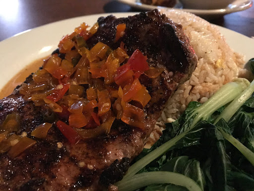 This was was extremely good. I was looking for Chinese food and figured Id give this place a try. Certainly not your typical Chinese and more of an Asian-fusion. The meal was delicious. The desserts selection and dessert itself werent all that great, but the entree certainly made up for that. Cool ambiance, tons of seating upstairs and down, with pool table upstairs. Hard to recognize from the street. In fact, looks like dive-hole from the street but certainly the opposite once you open their awesome door.