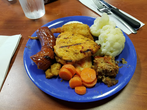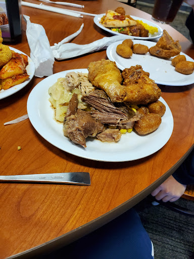 The people at my job like coming to this place for any kind of celebration. The idea is that theres something here for everybody. Im not convinced thats the case. Look, theres not much too this place. Its overpriced at like $15 a person. They trick you into thinking thats a good value because its a buffet, but think about it. When is the last time you spent $10 on a meal and walked away hungry? Portions are huge at restaurants anyway, especially here in the south. You may eat 3 plates of food but its not actually bigger than a burger and fries from somewhere else crappy like applebees. The only real good thing here is the sides. From tbe potatos to the mac and cheese. I could eat that all day. It doesnt taste fresh at all, but still good in that processed as hell way. The bad is everything else. The meats are generally dry, just due to the nature of buffets. They sit under heat lamps for long stretches of time. Youre not allowed to refill your own drink. The bussers do that, which results in a confusing tipping dilemma. The desserts are sub par. This GC in particular tries to sell froyo as ice cream. Do they think people wont notice? It is totally different. This place hovers between 1 and 2 stars for me, but im nice so I round up