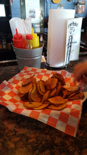 I dont frequent the bar portion but the restaurant on the side is very good. They have fresh cut ribeyes and french fries that are awesome. They also have jumbo wings that are super and I really like the onion rings too.