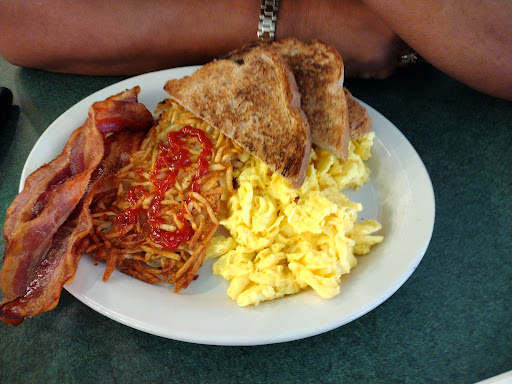 My wife and I had a late brunch here on a Tues. afternoon. She had the "Eggs, Hashbrowns & Toast" ($5.49) and told the waitress (Erin A) she liked her scrambled moist. The eggs came out exactly as my wife liked and Erin said in the future simply ask for "scram, lite." I ordered the "Breakfast Pie" ($8.99) which is a delicious brew of eggs, cheese, mushrooms (iots of them), peppers and red skinned potatoes. Everything came with more than generous portions cooked just right. An added bonus are stacks of premium Dickinson preserves on the table. For what its worth, I saw on the menu that they had half pound burgers so I asked if they could be ordered other than well done and was told I could get whatever I wanted.