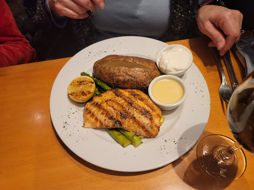 Was fairly disappointed. We were told at the door before we sat down they were out of prime rib. Thats one of the main reasons we came here and it was their Friday night special. It took longer then expected for the waitress to take our orders. After several minutes, the waitress came back and said they were out of oven roasted chicken so I had to find something else for a second time. The food finally came and wasnt as good as I expected it would be. The lemon chicken had a good flavor but a weird texture. The mashed potatoes and salad were the best thing on the plate. The bread knife was duller then my 2 year olds spoon. There are lysol wipe containers everywhere on top of the counters and bar. Yes, Im glad theyre using them but they should be out of site. Oh, and the bread was served with butter in a plastic container. It wasnt even real butter. For an upper scale restaurant I would expect higher standards.