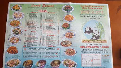 The Pearl is by far the best value in Chinese takeout youll find in Raleigh. They use quality meat in all their dishes, none of the spongy, soft centered junk you find at the other restaurants. Generous portions, consistently great food, and friendly staff. A+