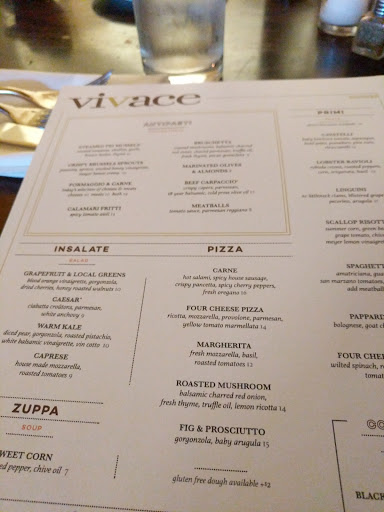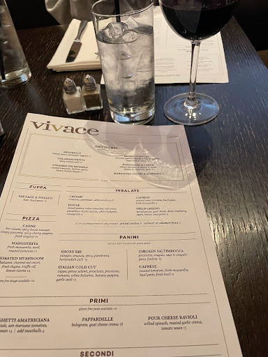 Vivace is always a place we head to when we are looking for that someplace special to celebrate an occasion. Elegant feel inside lends itself well to the robust menu. Their paninis are wonderful for lunch! And being a fish lover Ive enjoyed their roasted salmon and swordfish and have never been disappointed.