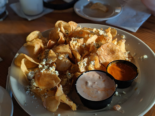 Went for first time. Looked at the menu before we went and it looked great. House chips were good. Fries were decent. Had boneless wings with 2 sauces. One was great the other had no flavor at all. Boneless wings were very small pieces of chicken. Got a plate with 12, which would have been too much normally, but could have easily eaten twice that many. Each "wing" was about 1 bite. Burger was horrible. Overcooked, dry, and more dense than any burger I have ever seen. Service not bad. A little slow, but not bad.