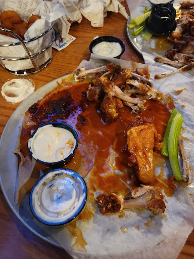 Good wings, pretty good bar food, but they usually have the sound system turned up super loud?!?! Whether its TV, music or a live band, even when its something I want to hear, its usually too loud and its annoying! Some of the wait staff are really good, but as often as not they are a little snarky. Yes, I keep going back because the wings are good and because thats where some of my friends/family want to go sometimes... but not sure how long I will keep going if they dont turn down the sound and turn up the service.