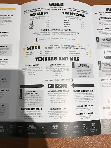 Good experience. They changed their Tuesday traditional wing deal. Used to be 50% off. Now it is buy 5 get 5 free. I am a wing fanatic and Buffalo Wild Wings just lost a consistent customer.
