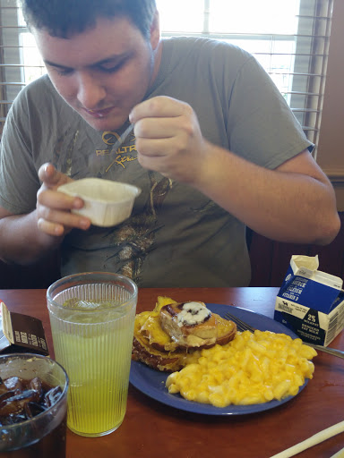 Had really great service. Came in about the time they were switching from breakfast to lunch and my son wanted pancakes but they had already put the stuff away. The next thing I know a gentleman named Ricky came to our table asking if he really wanted pancakes and of course he said yes so Ricky went and made some pancakes just for him. Waitress was Stacy and she was also very nice.