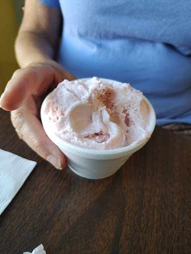 Average place, mostly ice cream. Should have more choices because of that. Wish they would use cardboard cups instead of these horrible white foam plastic cups and wooden spoons instead of these plastic spoons. One of the few places that has a good bathroom also convenient tables and chairs outside in the shade. Makes it really nice to enjoy your Ice cream there. $ 3.00 for 2 scoops.