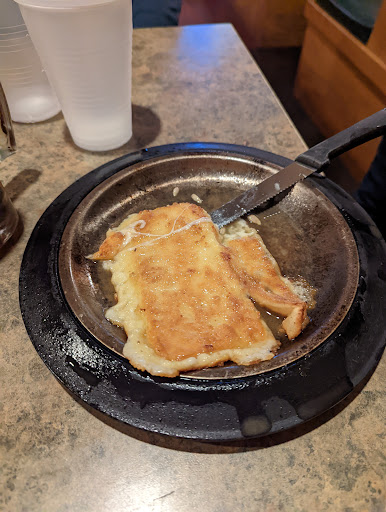 Im attracted to Greek-owned restaurants - in large part because the Greeks know how to run a restaurant - or diner - or whatever food outlet it may be. Started up with Saganaki and Calamari - both quite good. Surprisingly, I opted for the Gyro platter. it was good, but nothing spectacular. I yearn for the authentic rotisserie gyros with alternating lamb/beef - but alas, this place doesnt have those shavings. Son had burger, which he liked. Daughter had a nondescript chicken cesar. Like most Greek-run joints, this is a "pay at the exit" deal - so we did - and then we exited.