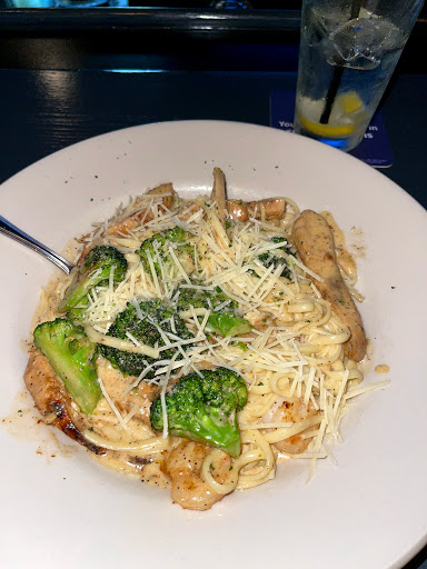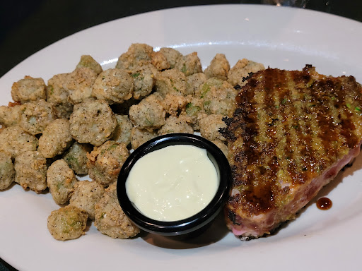 Food and service is very hit-or-miss. I often get the pecan-encrusted trout which I find to be delicious, and the hush puppies are fantastic, but I ordered the fish-and-chips for lunch once and it was not good. Bland and soggy. The last time I went my parents came with me, my Dad got the Asian salad and said the one from Chic-Fil-A is better and has more taste, my mom got the mixed grill, and the veggies were hard and nearly raw. She asked that it be cooked a bit more, and it came out burnt to a crisp, with some veggies almost unrecognizable. We asked for the manager at that point who compd the meal, and brought a third one, it was a bit more edible but still not particularly great. However the coconut cheesecake dessert I had was amazing. So its a frustrating experience coming here, you just never know what you will get. When its good, it can be VERY good, but the consistency is just really not great.