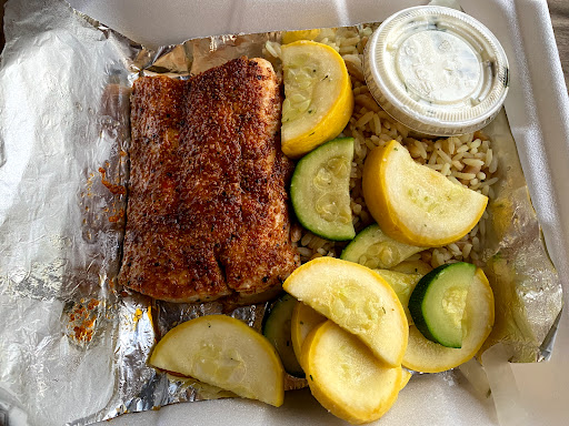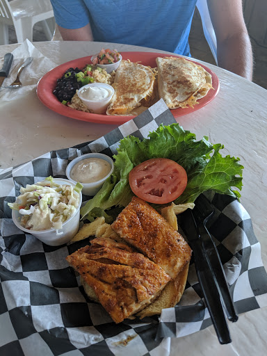 We all were very impressed with the food here. Not one complaint. Three of us got the Cajun tuna wrap, myself including and it was great. Others got the fish tacos and prime rib wrap, and everyone thought their meals were great. My wife and I also got the bacon wrapped scallops, which were the best Id ever had. Wish there were more and contemplated taking two orders to go with us! If you want a good island style meal def go here.