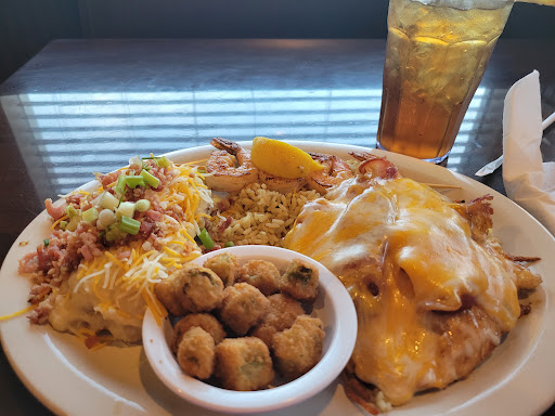 First let me say I have heart problems and cant eat much salt on my food. I ordered a baked potato with everything on the side and a house salad. Well I remembered after I put the order in that they cook the potato with salt on the outside so I asked if I could just have one with no salt on the outside. Well the manager came around and said no they can not do that bc all the potatoes salted I said surely you have some with no salt on the outside she said no. Which I find that to be complete bs!! They where just too damn lazy to do it. And also the waitress didnt even put in my order for my salad. So I had to sit there while my family ate and I couldnt bc I cant have all the salt that is on the other food. And my husbands fish and chips was hard dry and small pieces. I will never go back there again!!! And they also said we can give u a side salad on the house. Ugh hell no take your food and shove it!
