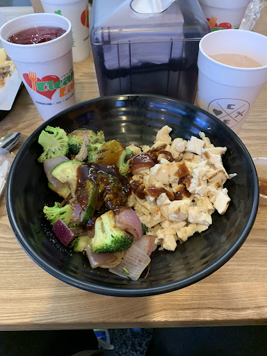 I ordered the bowl with rice, beans and veggies, they were great. The sweet and spicy sauce was great as well. My only issue was the chicken. I expected way better quality chicken from a place like this. The chicken I experienced smelled, looked and tasted the equivalent to chicken out of a can.